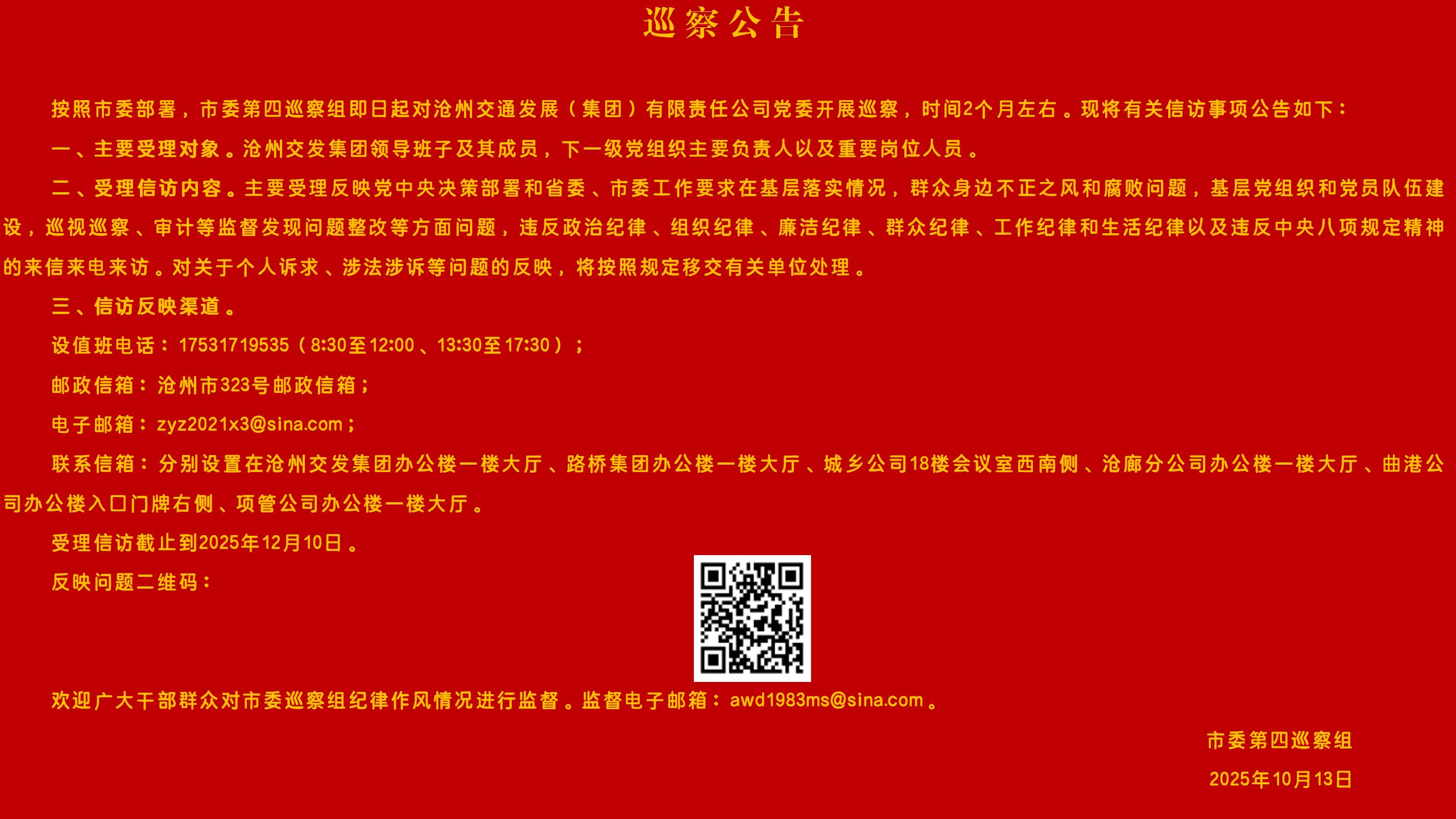 市委第四巡察組巡察 滄州交通發(fā)展(集團(tuán))有限責(zé)任公司黨委 工作動(dòng)員會(huì)召開(kāi)